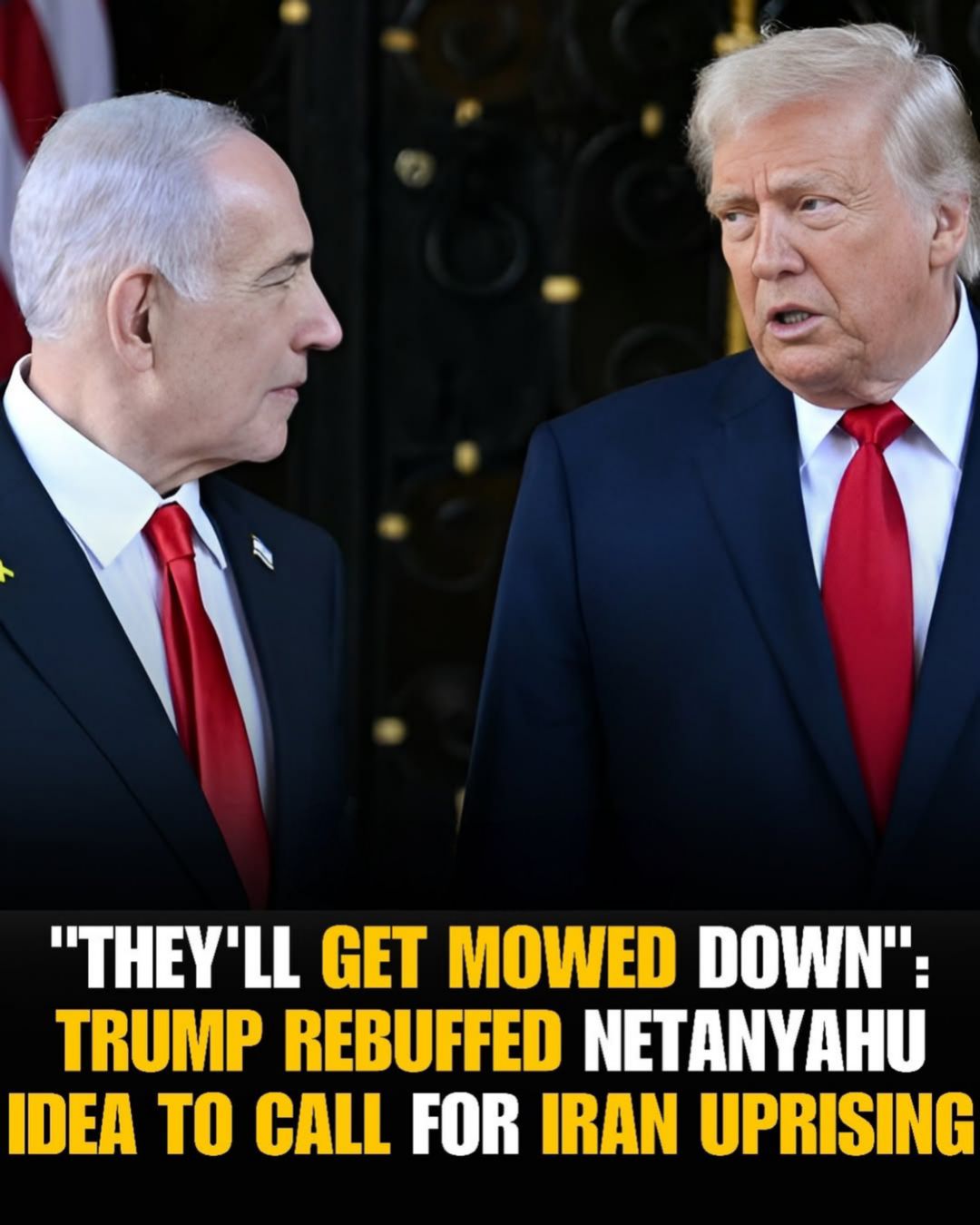 Reports from multiple outlets indicate that Donald Trump rejected a proposal from Benjamin Netanyahu to publicly call for an uprising inside Iran as part of efforts to weaken the Iranian regime. According to Axios and other news sources, Trump argued with Netanyahu that encouraging Iranians to protest could lead to violence against civilians, reportedly saying protesters would “get mowed down” by Iranian security forces if urged into the streets — a comment that highlights a tactical and ethical divide between the two leaders’ approaches to the ongoing conflict.