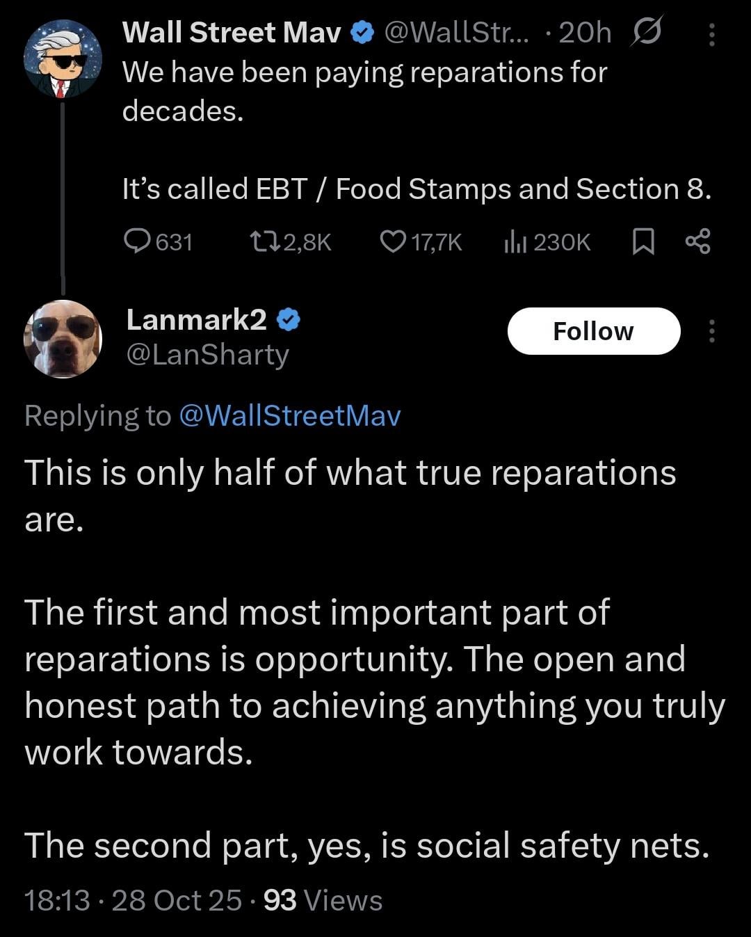 Start with equal oppertunities before claiming you are "paying reparations"