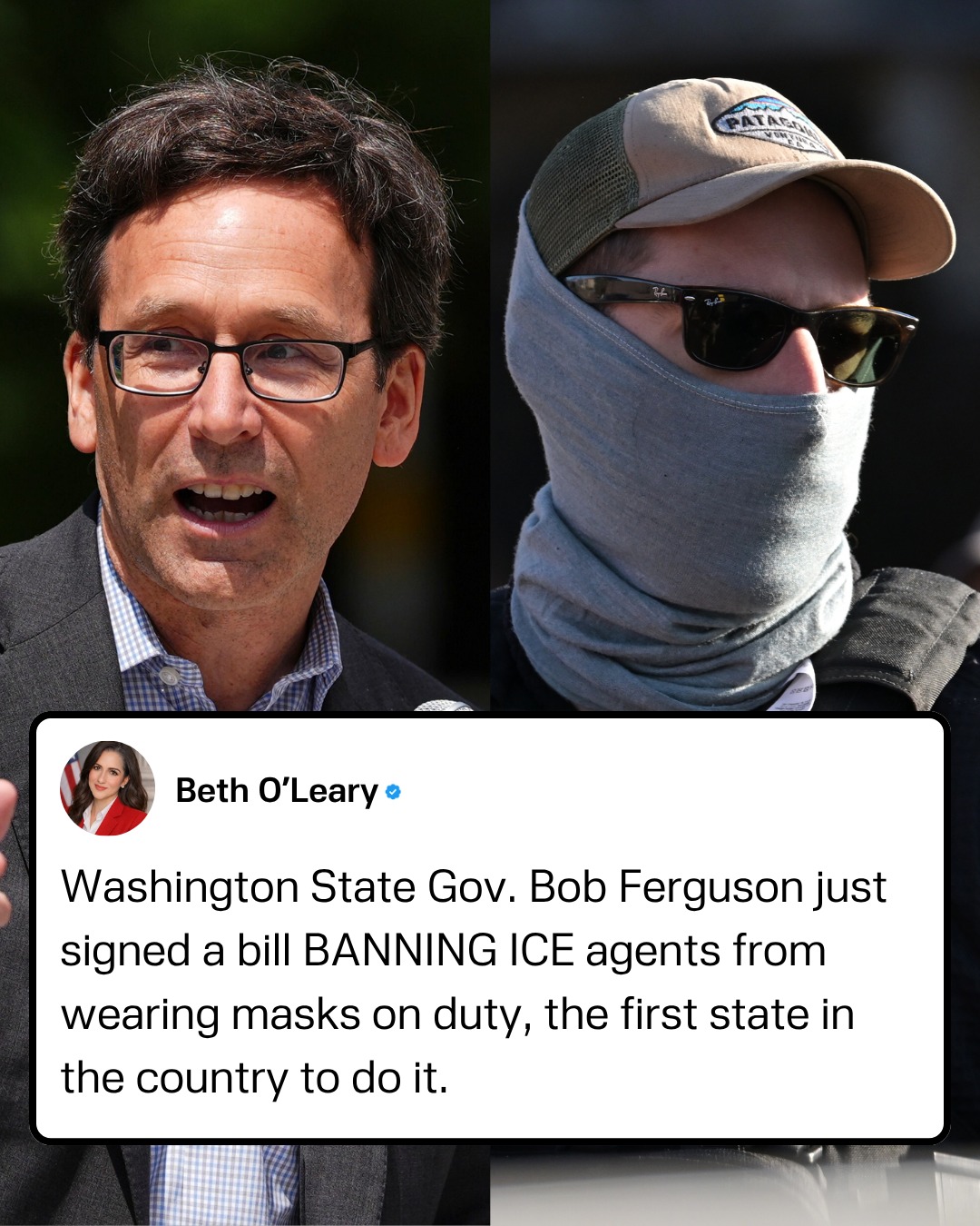 Washington Governor Bob Ferguson has signed a new law banning ICE and Border Patrol agents from wearing masks while interacting with the public — the first move of its kind in the U.S.