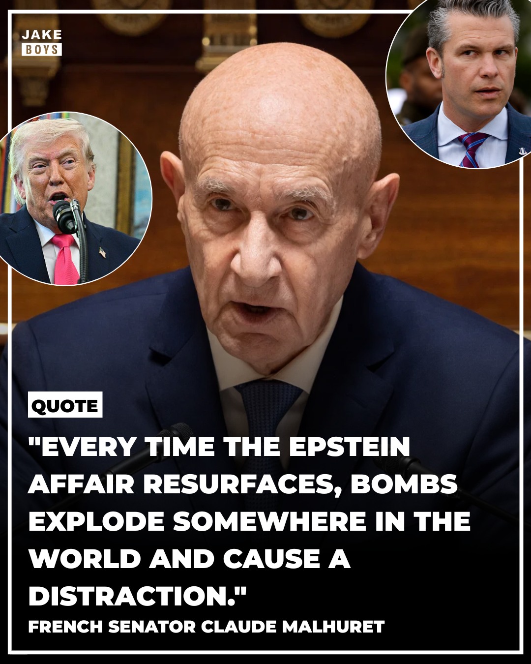 The speech has since spread widely online, with supporters calling it a blunt international critique, while critics say it crosses into overheated political rhetoric.French Senator Claude Malhuret delivered a scathing speech targeting President Donald Trump and figures linked to his administration. “A year ago, here in France, I compared Trump’s presidency to Nero’s court. I was wrong,” Malhuret said. “It’s the miracle court.” He then went through key figures one by one: “An anti-vaxxer, former heroin addict as Minister of Health” (referring to Robert F. Kennedy Jr.). “A climate-skeptic Minister of Economy” (referring to Scott Bessent). “An alcoholic TV host, Minister of the Armed Forces” (referring to Pete Hegseth). “An old Qatar agent, Minister of Justice” (referring to Pam Bondi). “A groupie of Putin, Minister of National Security” (referring to Tulsi Gabbard). He then widened his criticism, quoting a proverb: “When a clown settles in a palace, he does not become king — it is the palace that becomes a circus.” Malhuret also raised concerns about political power, foreign influence, and conflicts of interest, arguing that such issues could trigger serious consequences in other systems. He ended with the line that quickly went viral: “Every time the Epstein affair resurfaces, bombs explode somewhere in the world and cause a distraction.” The speech has since spread widely online, with supporters calling it a blunt international critique, while critics say it crosses into overheated political rhetoric.0 Comments 0 Shares 132 Views 0 Reviews