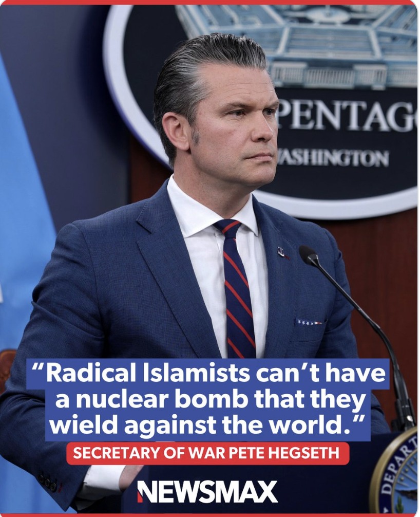 Pete Hegseth, Bộ trưởng Quốc phòng Mỹ cho biết : Hegseth cho biết chế độ Iran đã từ chối hợp tác với Tổng thống Trump để kiềm chế tham vọng hạt nhân của mình, dẫn đến "Chiến dịch Cuồng nộ Vĩ đại".Ông tuyên bố trước toàn quốc: “Chúng tôi không khởi đầu cuộc chiến này. Nhưng dưới thời Tổng thống Donald Trump, chúng tôi sẽ kết thúc nó.”