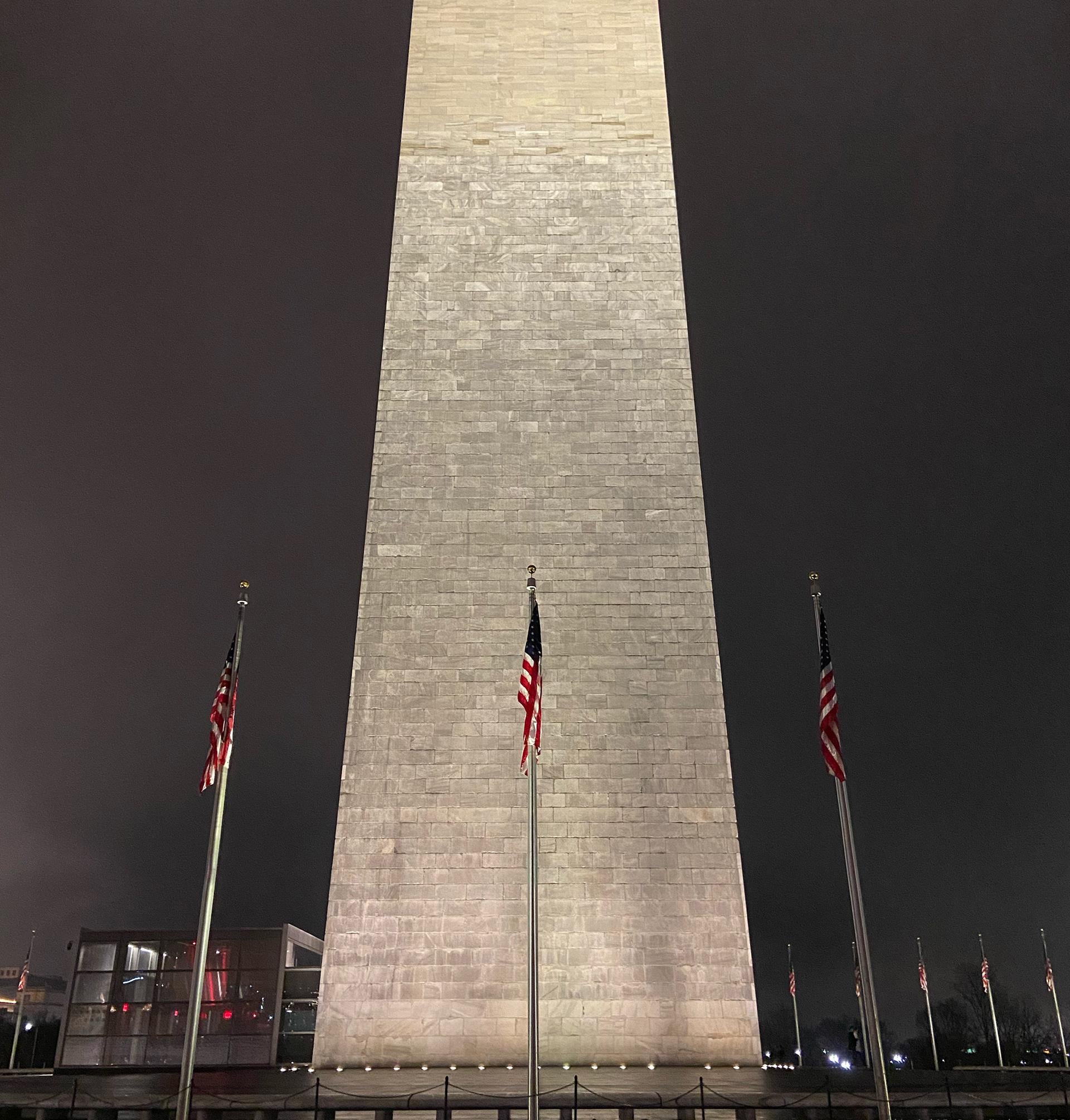 The Washington Monument switches stone types roughly 40 meters up