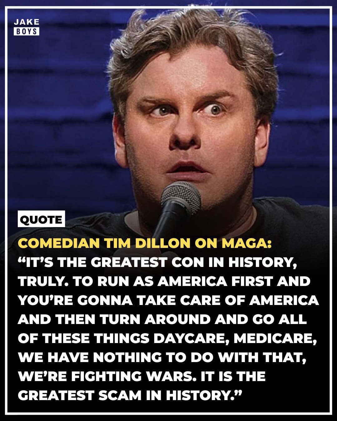 Comedian Tim Dillon is calling MAGA “the greatest con in history” — and his argument is rooted in a very real, recent controversy.