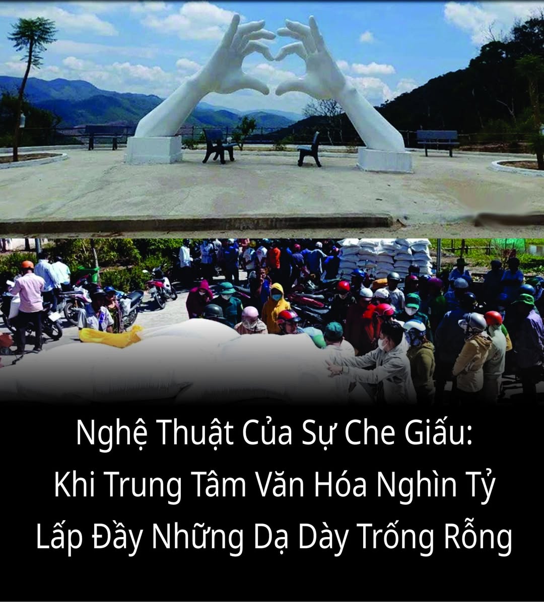 Nghệ thuật của sự che giấu: Tại sao lại là 1.100 tỷ vào lúc này? Việc dựng lên một "ốc đảo văn hóa" tráng lệ giữa biển khơi nghèo đói là cách để giới cầm quyền địa phương thực hiện một quy trình tẩy trắng ngân sách. Khi các chỉ số kinh tế thực tế bết bát, một công trình biểu tượng sẽ là công cụ hoàn hảo để báo cáo thành tích, biến những tiếng thở dài vì giá xăng, giá gạo thành những bản giao hưởng giả tạo. Đây chính là "nghệ thuật sắp đặt" tối thượng: dùng bê tông cốt thép để lấp đầy những khoảng trống trong lòng dân.