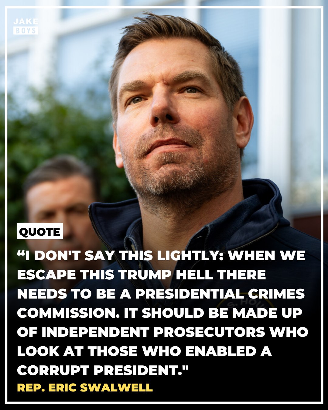 Rep. Eric Swalwell called for the creation of a Presidential Crimes Commission to investigate individuals who enabled President Donald Trump, describing it as a necessary step once the country moves past what he calls the “Trump hell.”