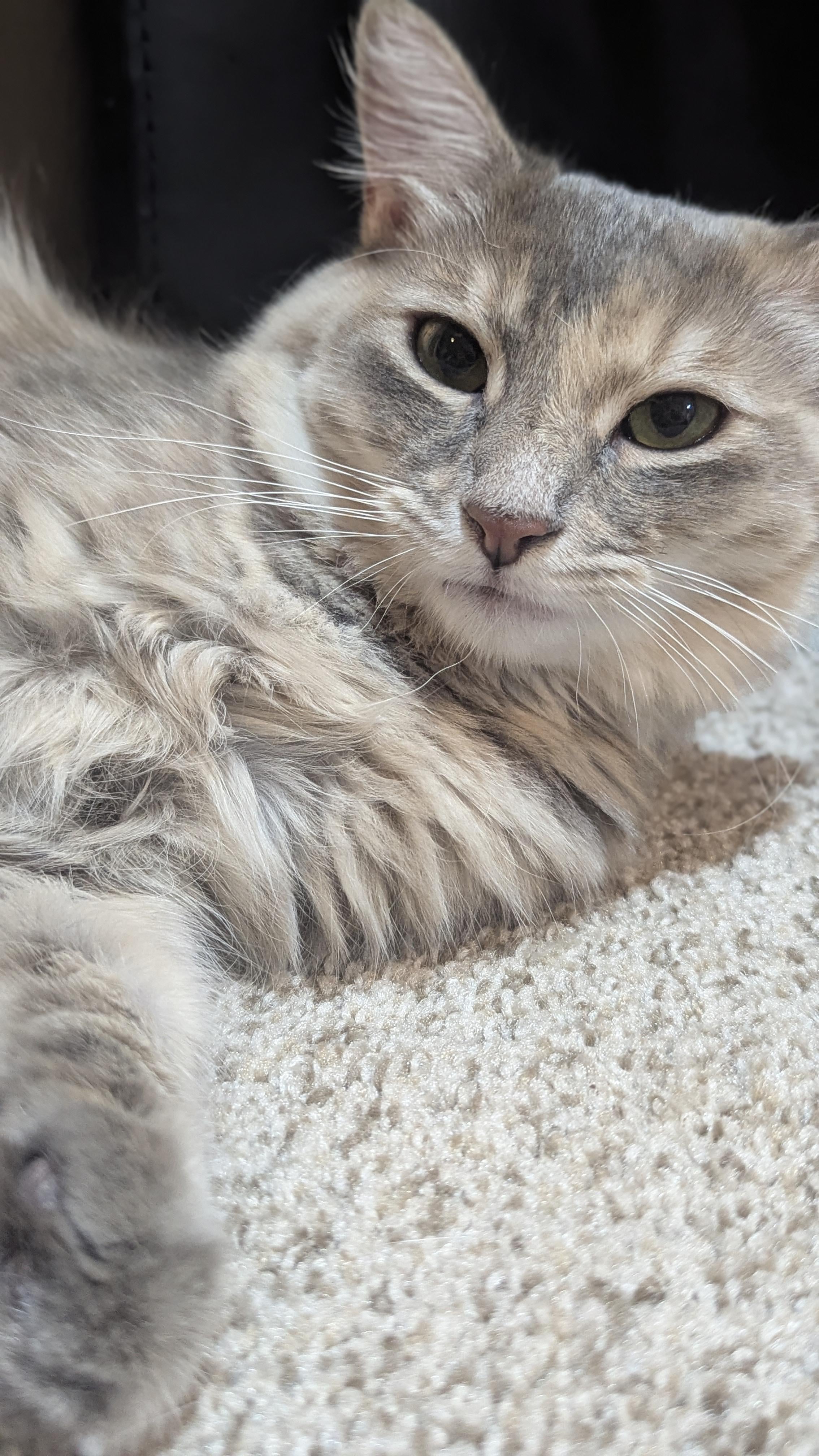 Newest addition to our family, Emilia. 1 year old rescue. 100% kitten energy.
