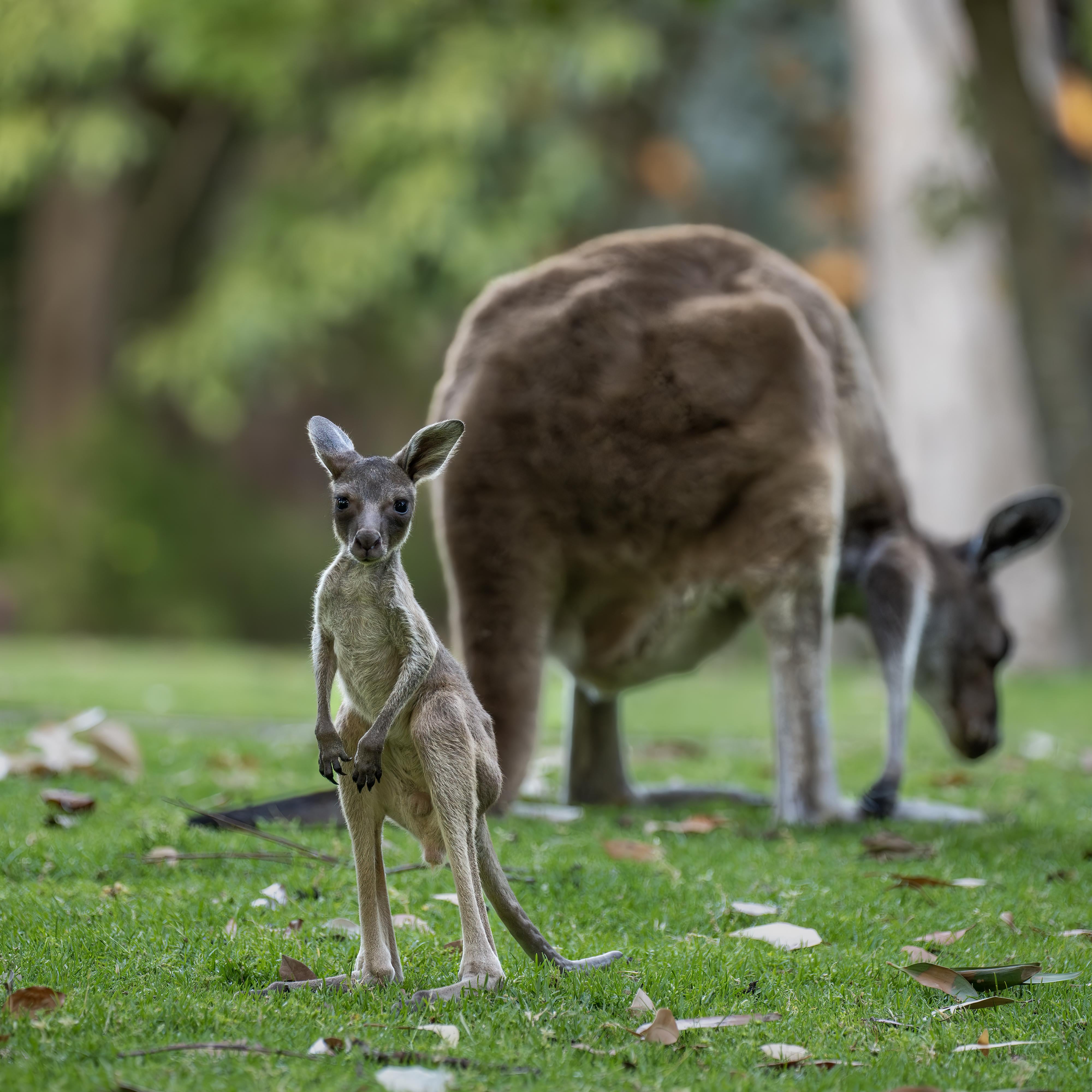 Baby Kangaroo Learning how to Stand. Mum's in the Background.