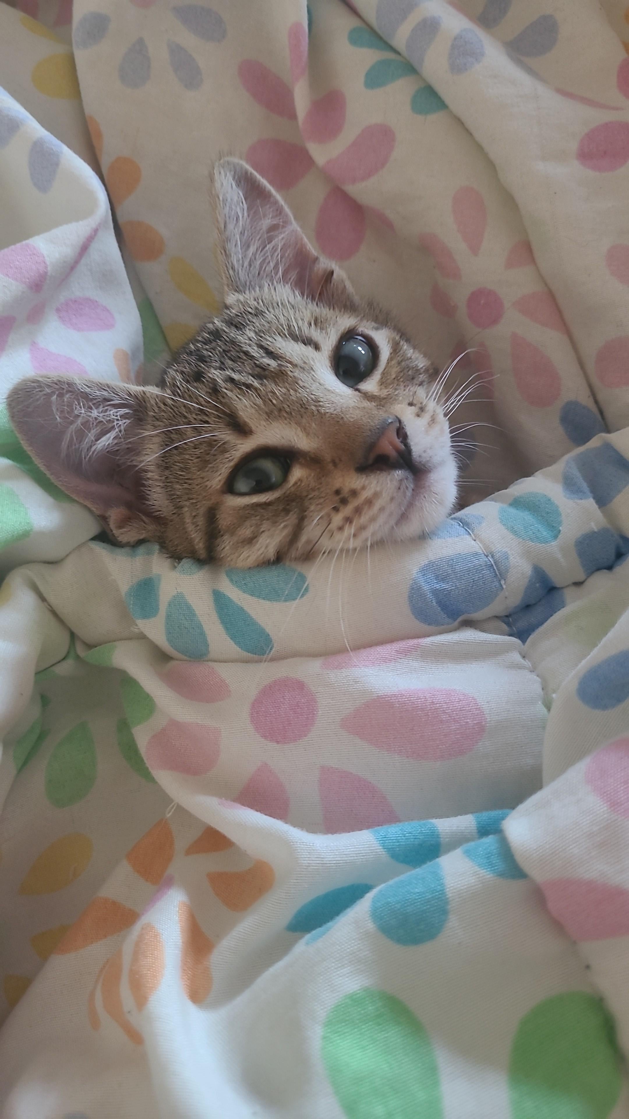 My kitten Finn ready to take a nap