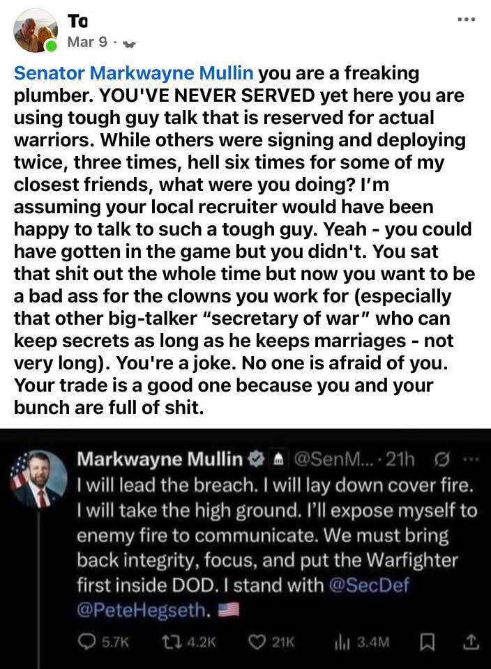 Tough guy, You are a freaking plumber markwayne mullinTough guy, You are a freaking plumber ❤️👌markwayne mullin 🤡0 Comments 0 Shares 148K Views 0 Reviews