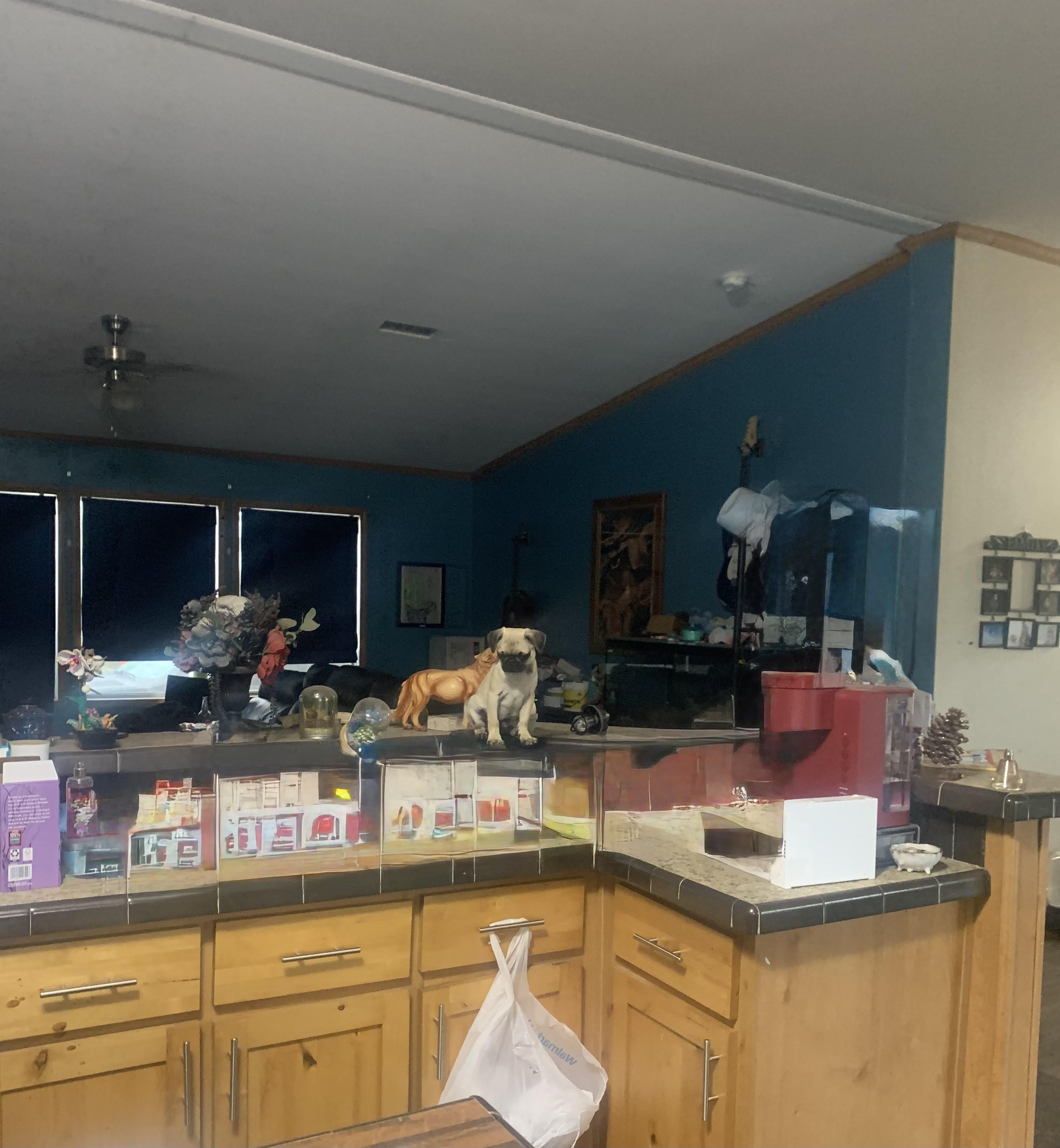 Teeny pug puppy on the counter