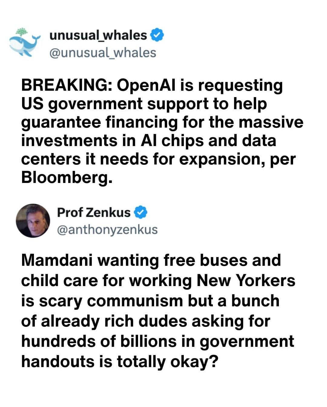 Free buses = communism, massive subsidies for AI chips = totally fine