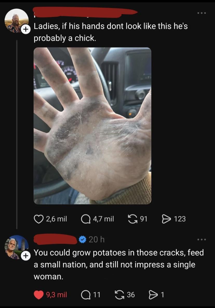 me hands dirty, me strong