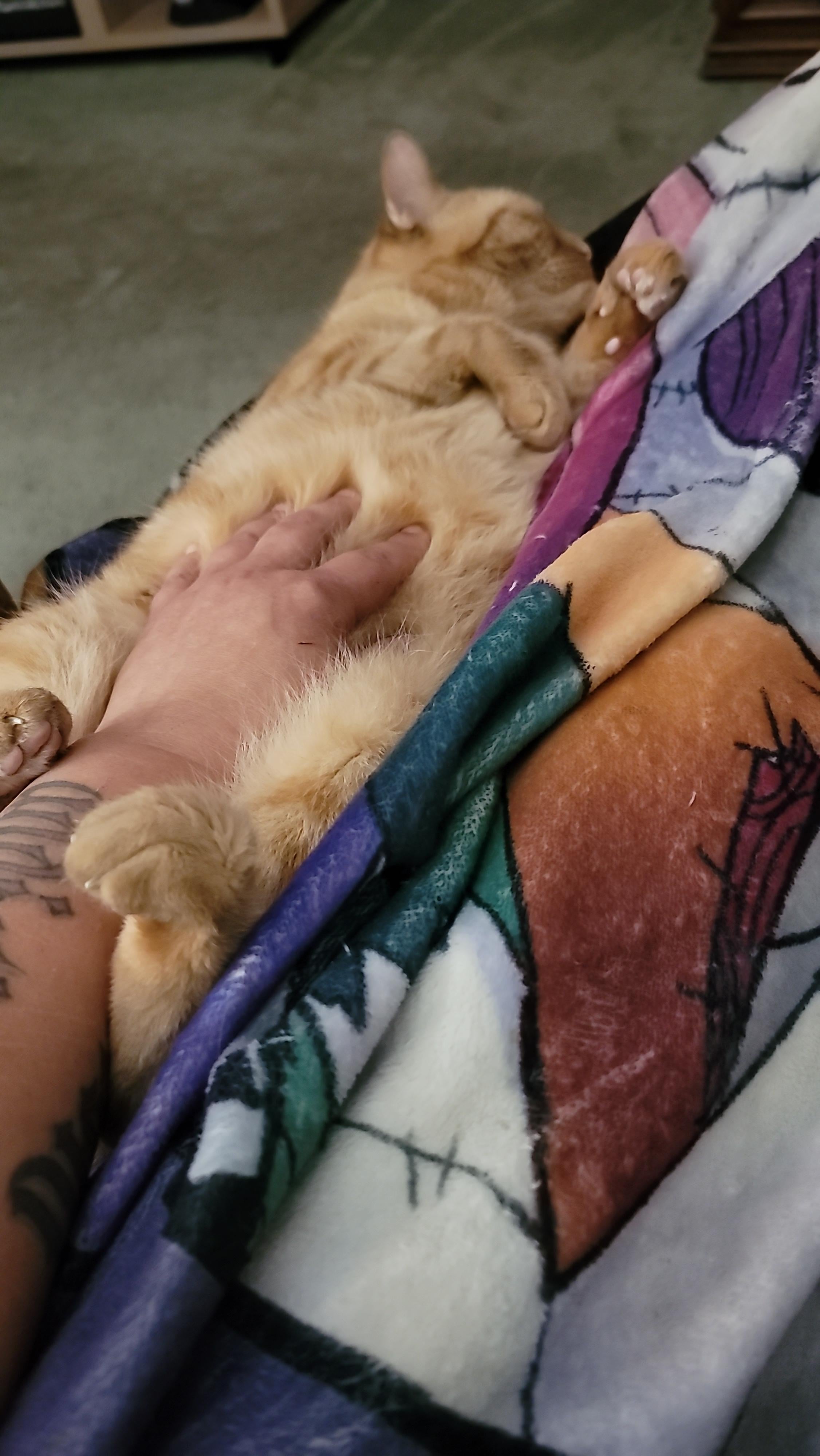Ginger kitty rare pic of belly rubs