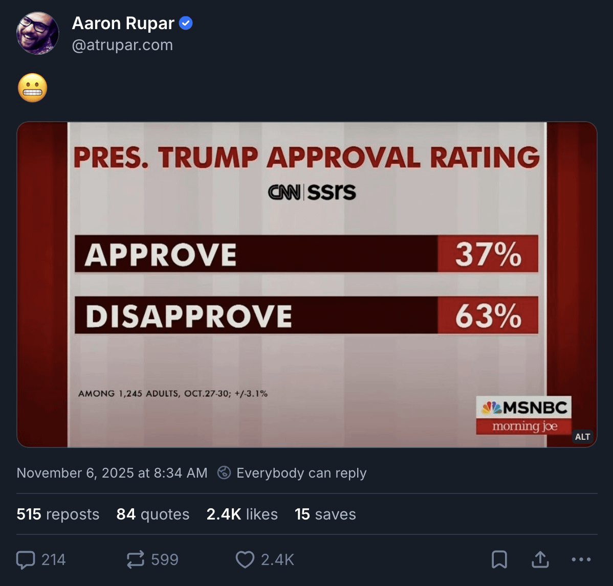 Trump's Record Setting Approval Rating--Record Lows, That Is