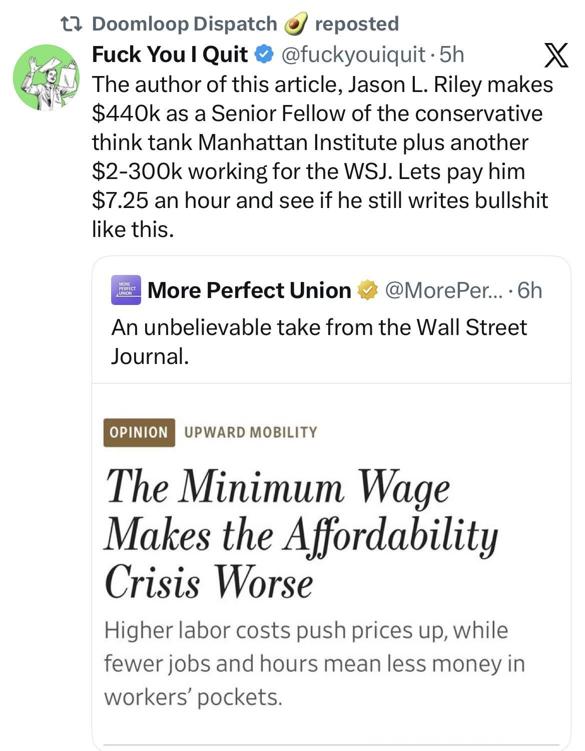 $7.25/hr for thee but not for me? Cringe…(writer making $600K complains about the minimum wage)