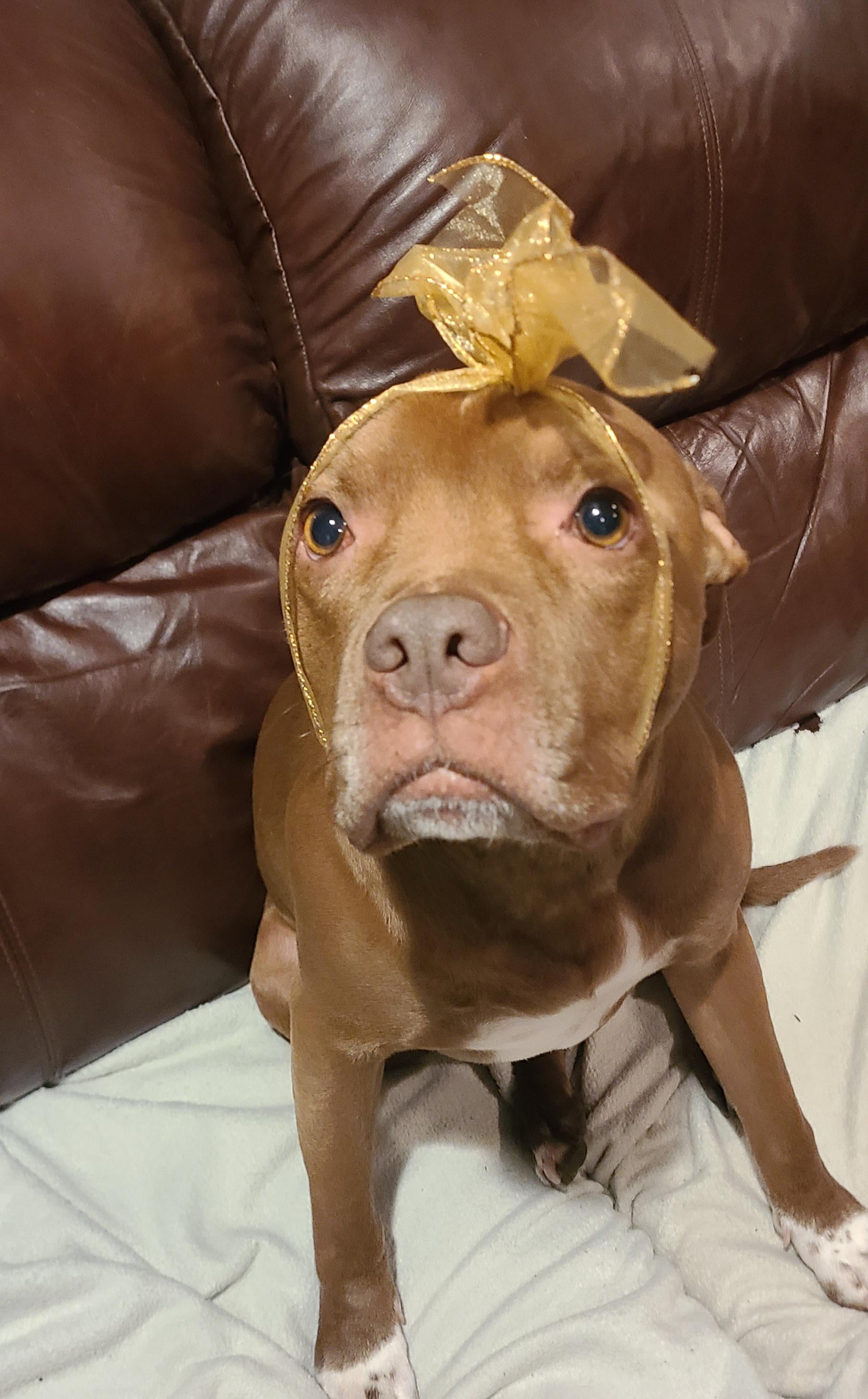 The bow was too small for his big (but beautiful) head