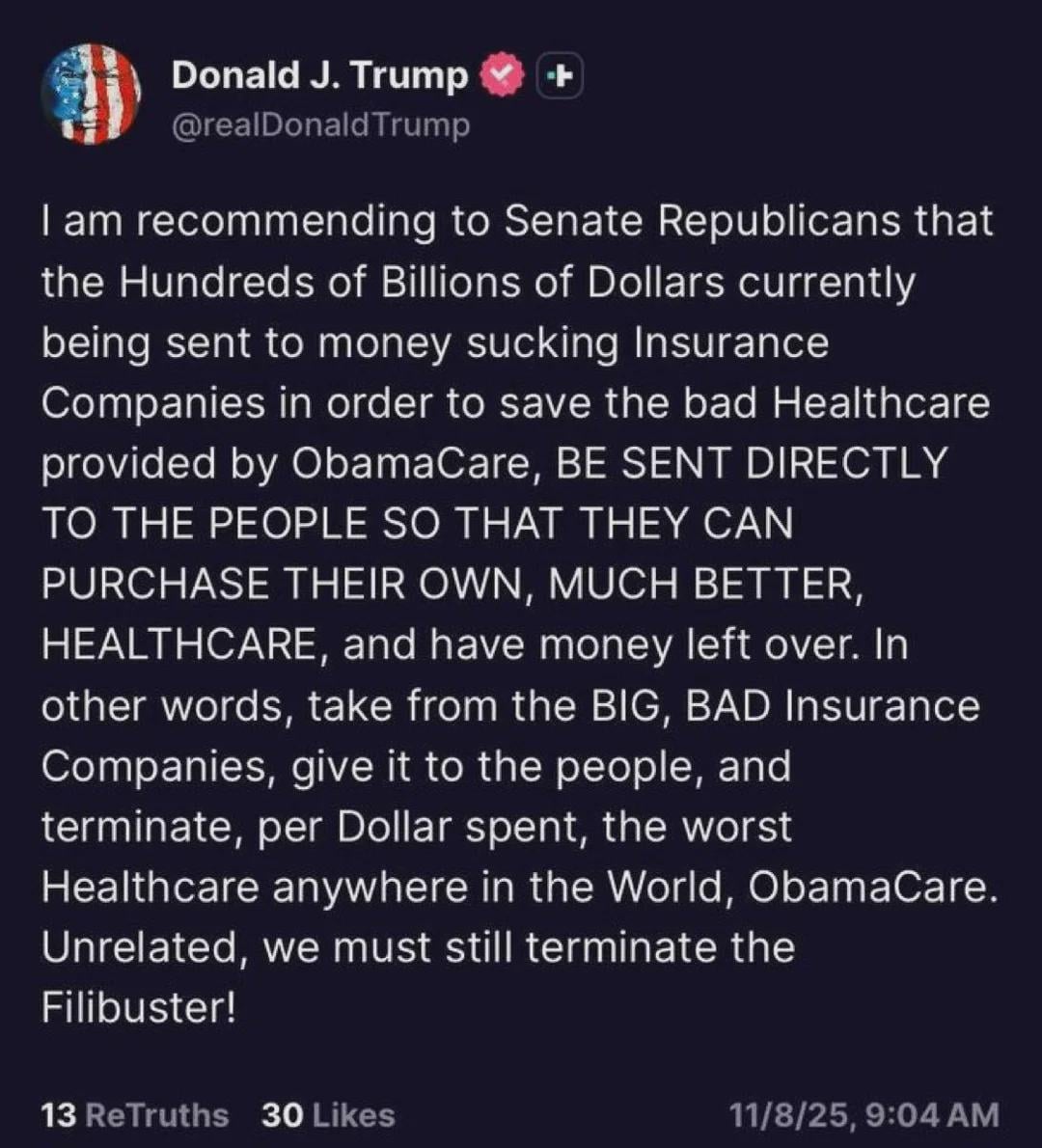 We finally have Trump's healthcare plan he spent 15+ years on: kick people off of the ACA and send them a bunch of money. Isn't this the sort of thing they spent years blaming Inflation on?We finally have Trump's healthcare plan he spent 15+ years on: kick people off of the ACA and send them a bunch of money. Isn't this the sort of thing they spent years blaming Inflation on?· 0 Reacties ·0 aandelen ·67K Views ·0 voorbeeld