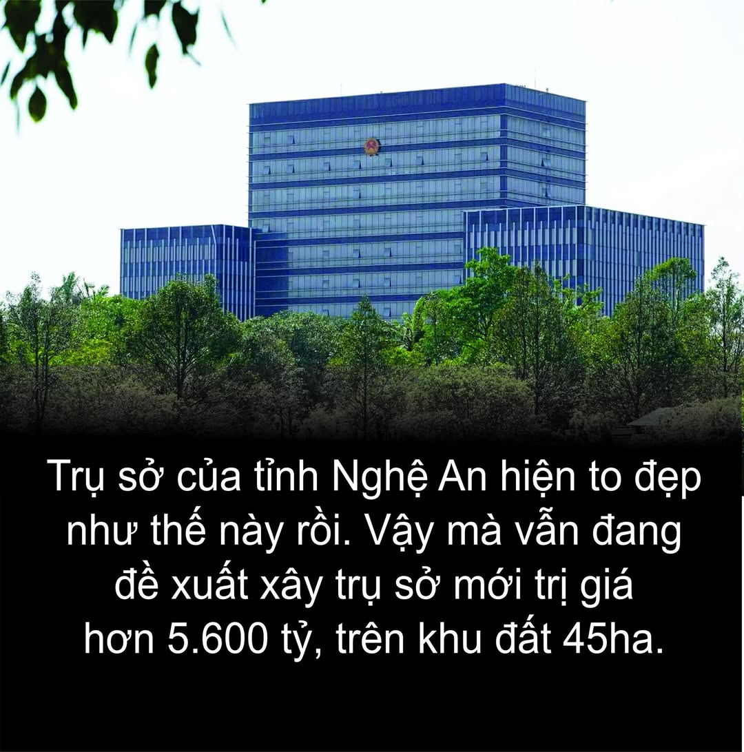 Trong khi người dân Nghệ An vẫn đỏ mắt chờ gạo cứu đói mỗi dịp Tết đến xuân về, thông tin về đề xuất xây dựng trung tâm hành chính mới trị giá 5.600 tỷ đồng trên diện tích 45ha như một gáo nước lạnh tạt vào dư luận. Một tỉnh nghèo, nợ nần chồng chất, nhưng lại sở hữu những "giấc mơ" xa hoa nhất: từ tượng đài nghìn tỷ, nhà hát tráng lệ và giờ là một "siêu trụ sở".