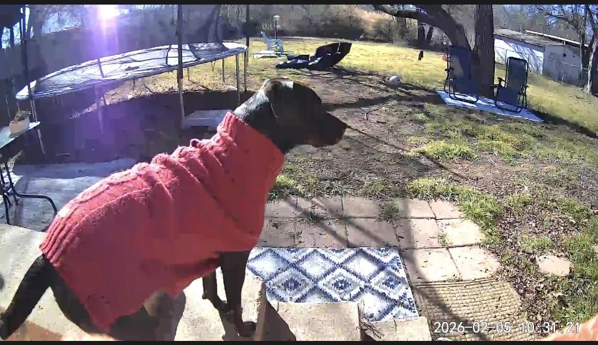 My security cam said “Person detected at back.” - Chica sure thinks she's a person!
