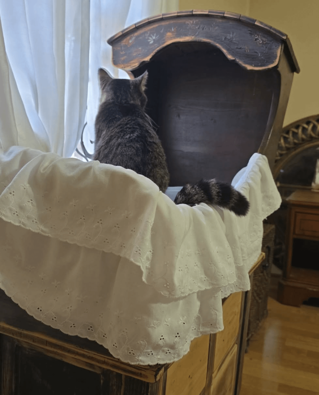 Hamburger knows he is a baby because he is in a crib. ❤️ 🐈