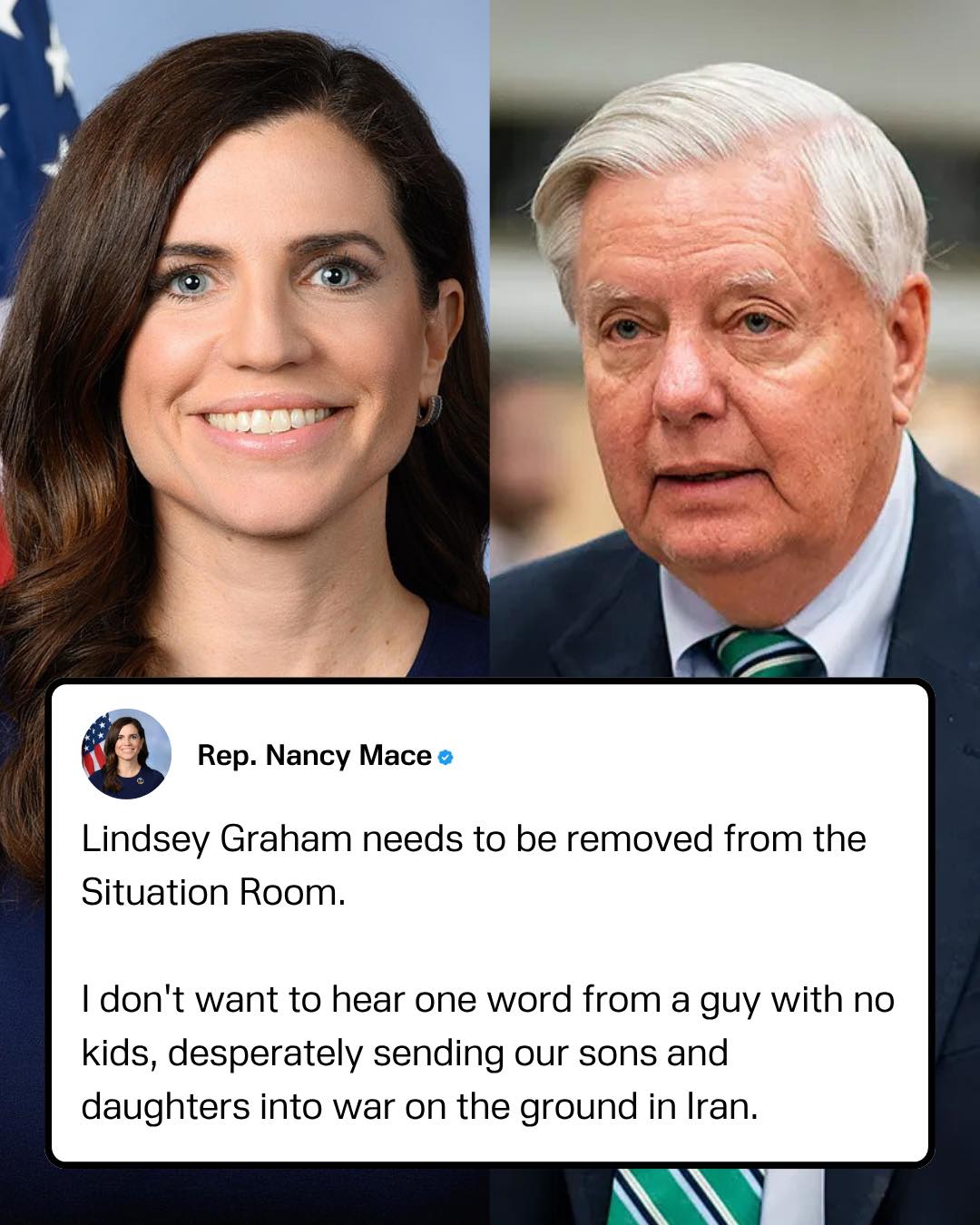 Rep. Nancy Mace has called for the removal of Lindsey Graham following his comments on sending people’s sons and daughters to Iran while putting boots on the ground.