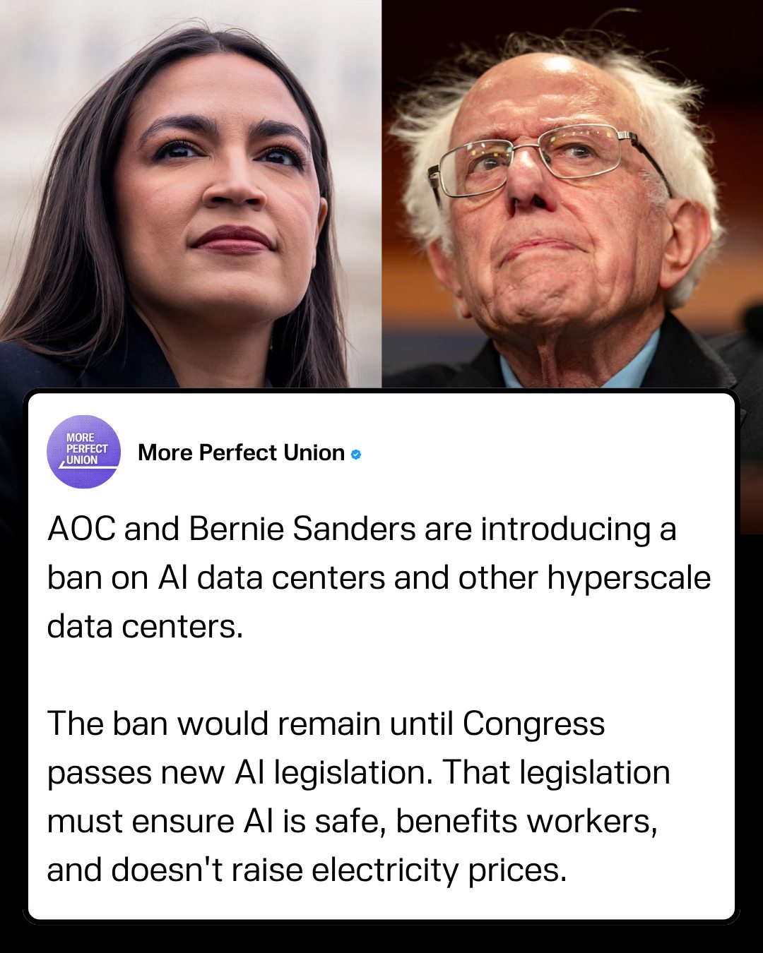 Their proposed legislation would require that AI systems are safe, benefit workers, and do not drive up electricity prices, effectively tying data center expansion to broader rules around AI governance and energy use.