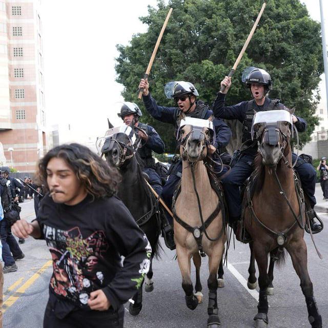 A man is chased by LAPD officers on horseback on Temple Street after "No Kings" protest on SaturdayA man is chased by LAPD officers on horseback on Temple Street after "No Kings" protest on Saturday0 Comments 0 Shares 144K Views 0 Reviews