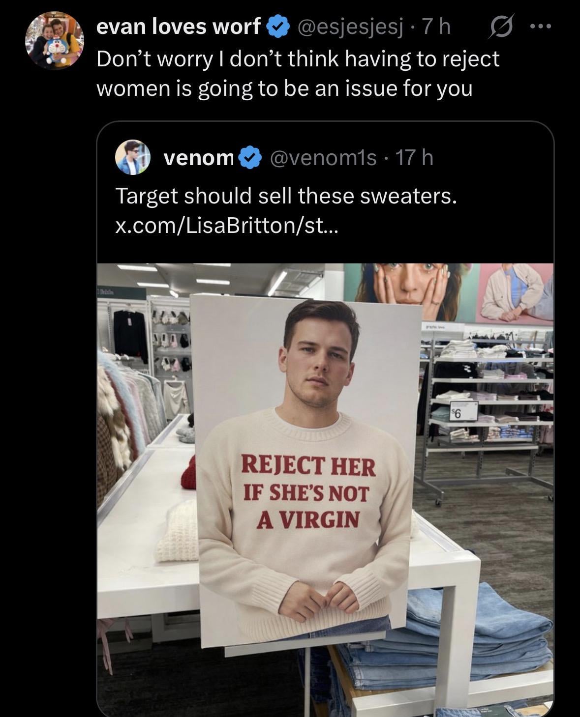 Nothing screams "virgin" more than a sweater like that
