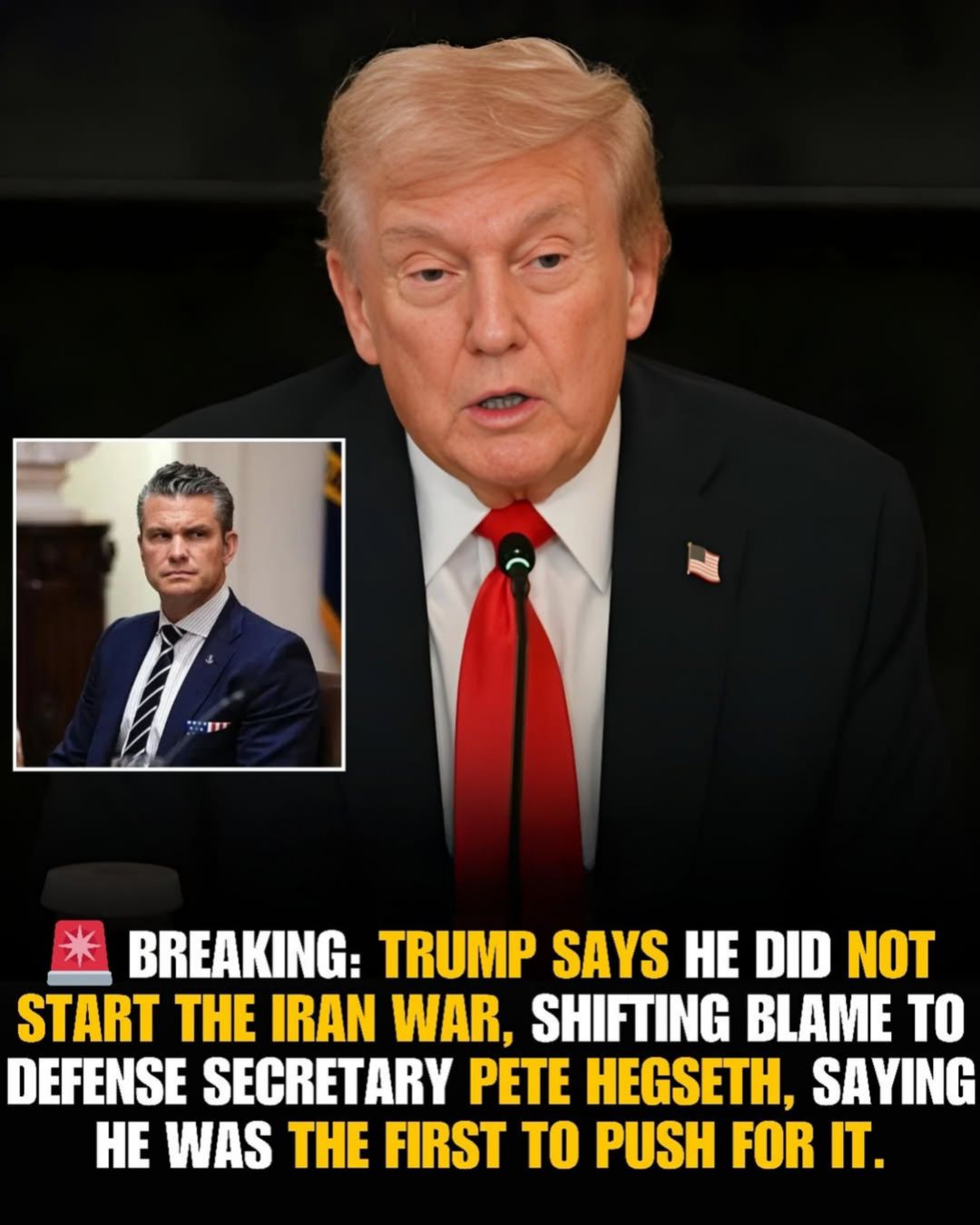 In recent public remarks, Donald Trump has distanced himself from responsibility for initiating the U.S. military conflict with gseth was among the first in his administration to urge military strikes, implying that the defense chief helped drive the move toward war — a shift in rhetoric that has raised eyebrows in Washington.
