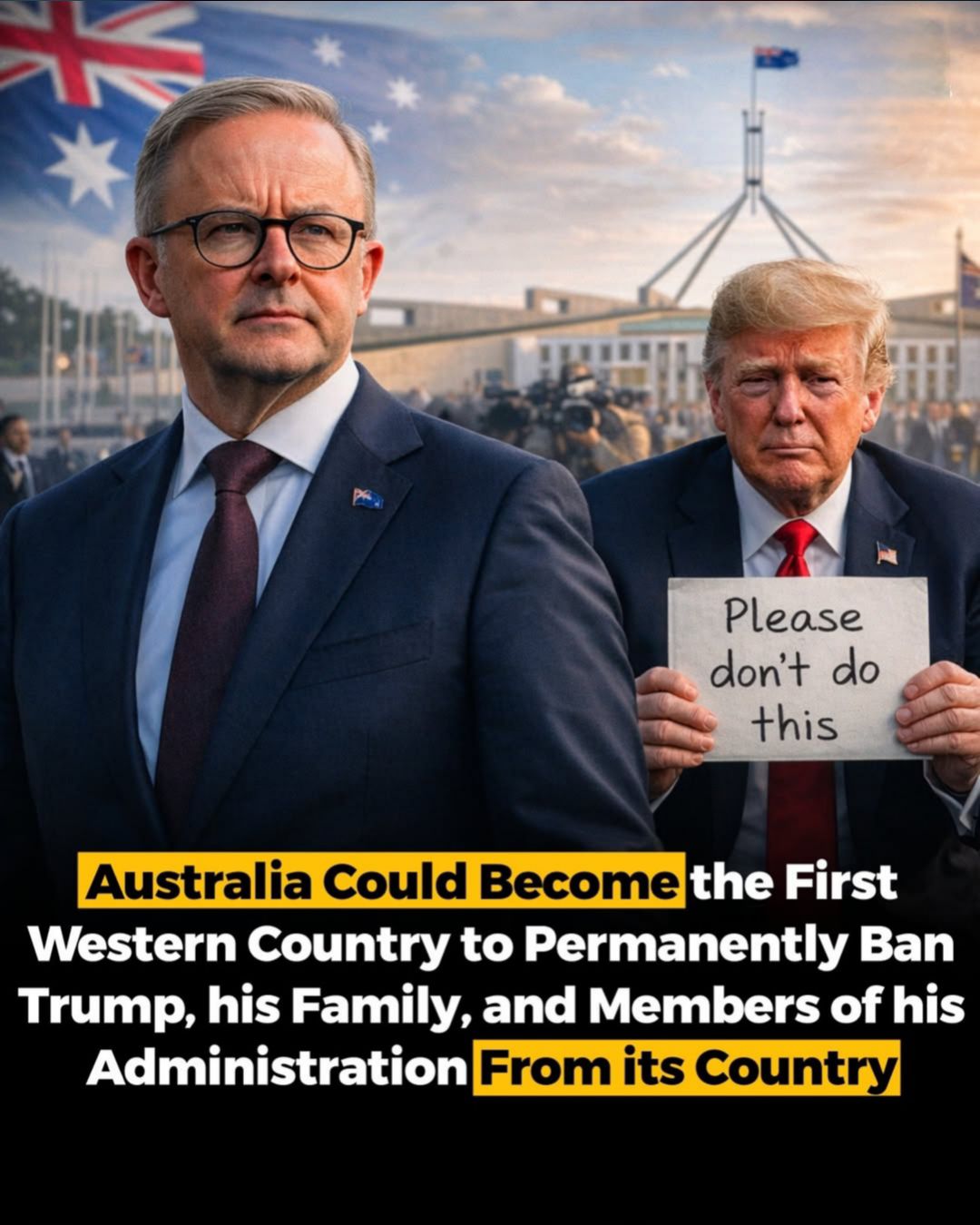 “Australia could become the first Western country to permanently ban Donald Trump, his family, and members of his administration,” — according to reports, signaling a potentially unprecedented diplomatic move.