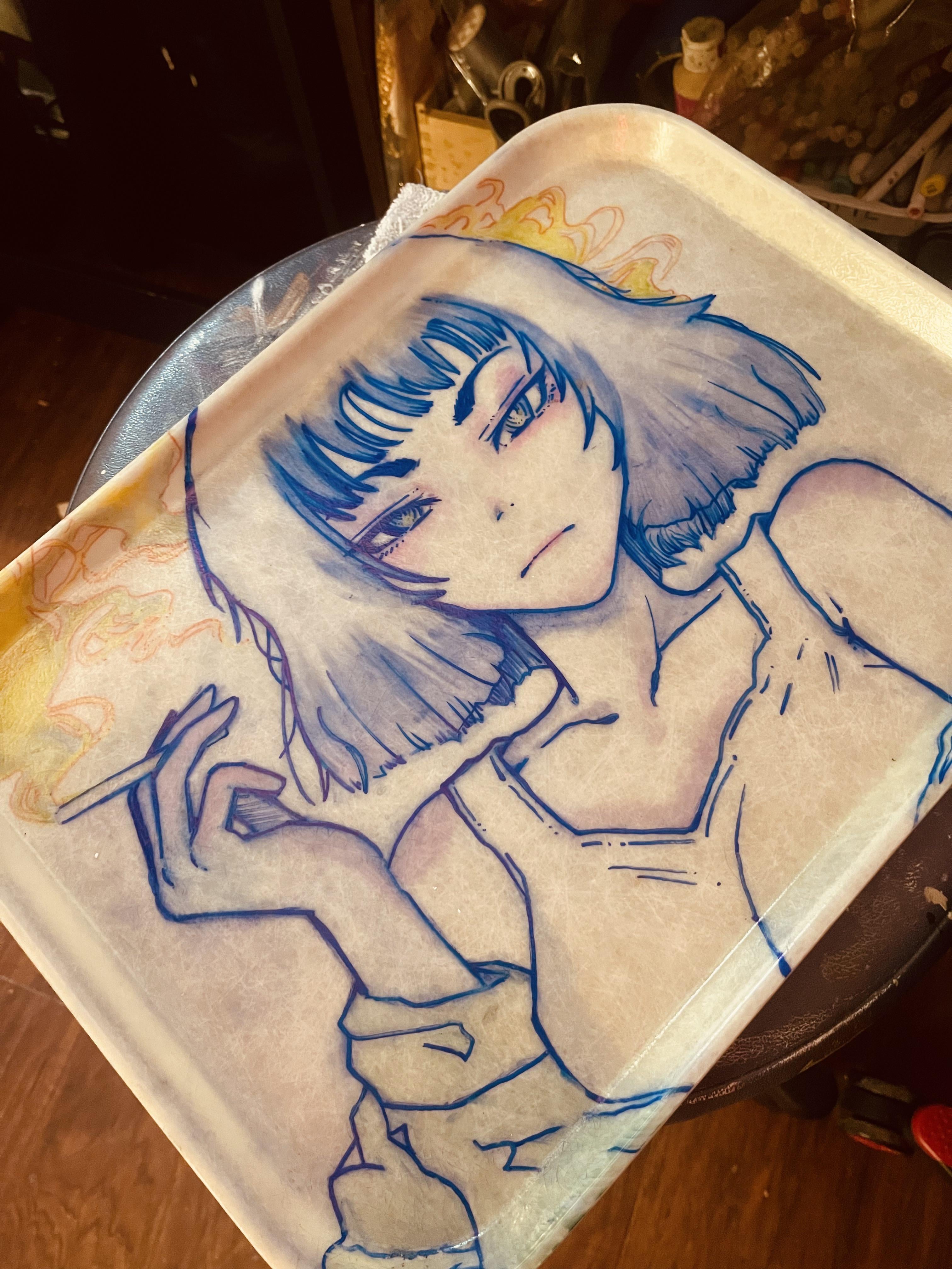 Sharpie and highlighter on a vintage lunch tray