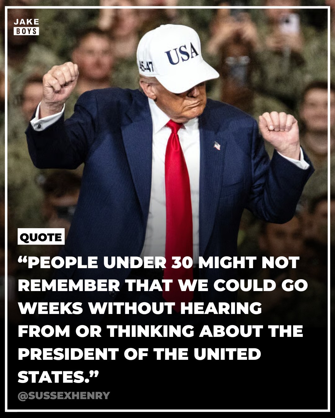The post highlights how the current 24/7 news cycle and social media have changed the way Americans engage with politics, contrasting today’s constant presidential presence with the relative quiet of past administrations. It’s sparking conversations about media, attention, and political fatigue among younger voters.