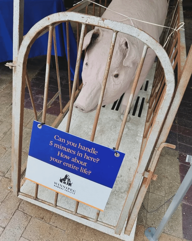 A replica of how female "breeder pigs" spend their lives in factory farms