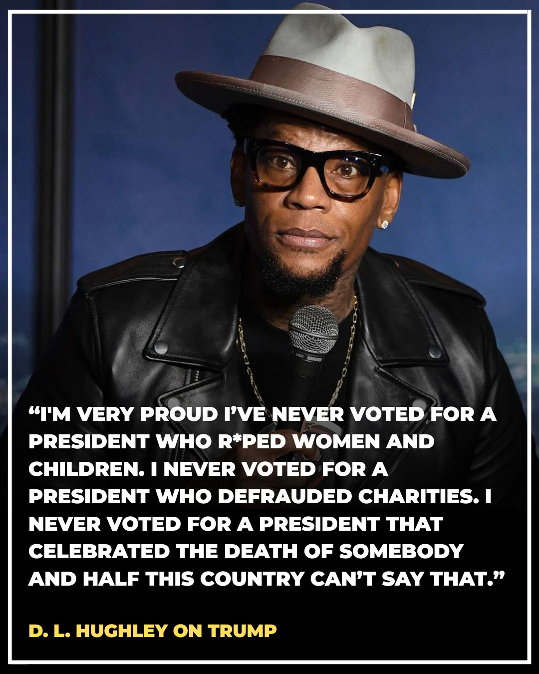 Actor and comedian D.L. Hughly delivered a scathing review of President Donald Trump, stating that he's "proud" he can say he didn't vote for him, and criticizing people who did.