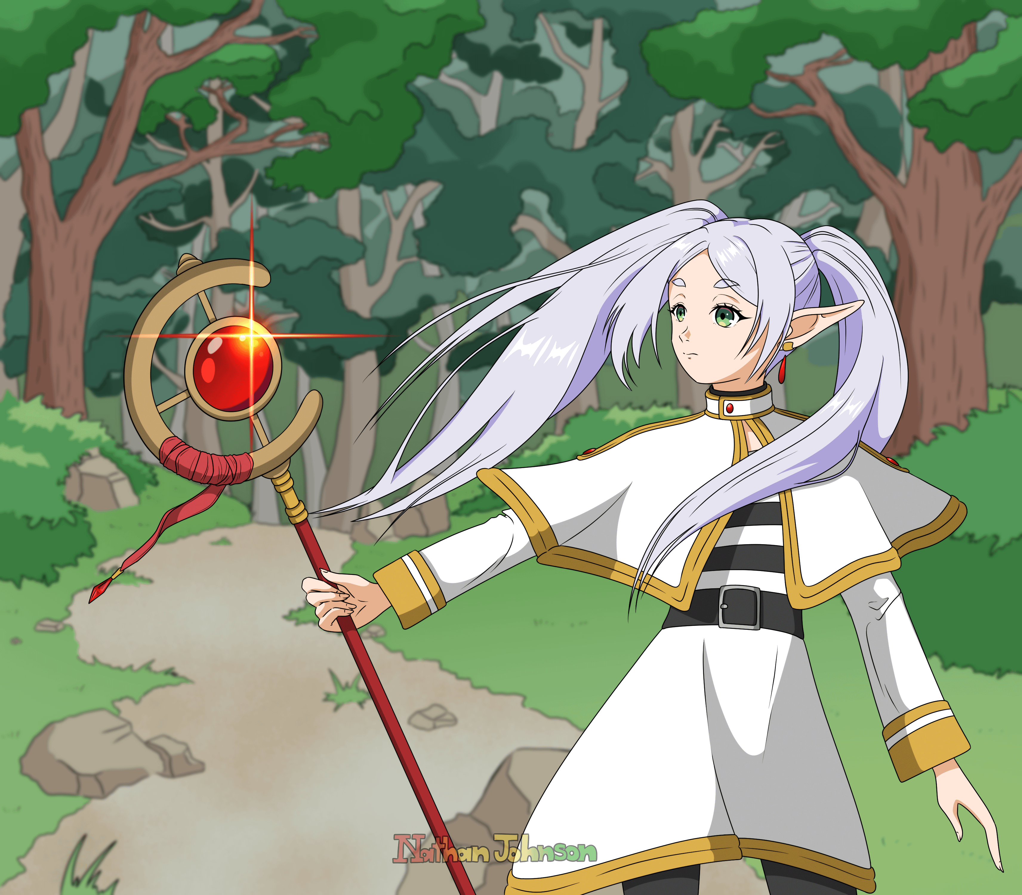 Frieren in a forest - fanart drawn/rendered in Clip Studio Paint!