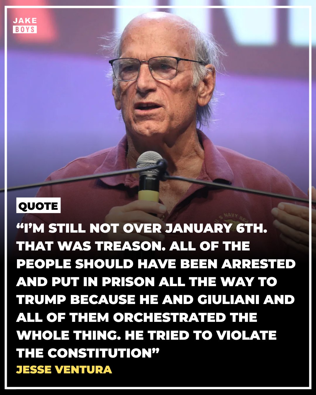 “I’m still not over January 6th. That was treason,” Ventura said, arguing that those involved — “all the way to Trump” — should have faced criminal consequences for their role in the events of that day.