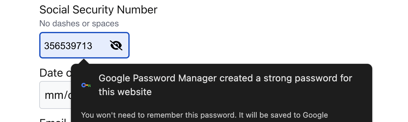 thank you google for automatically creating a social security number for me
