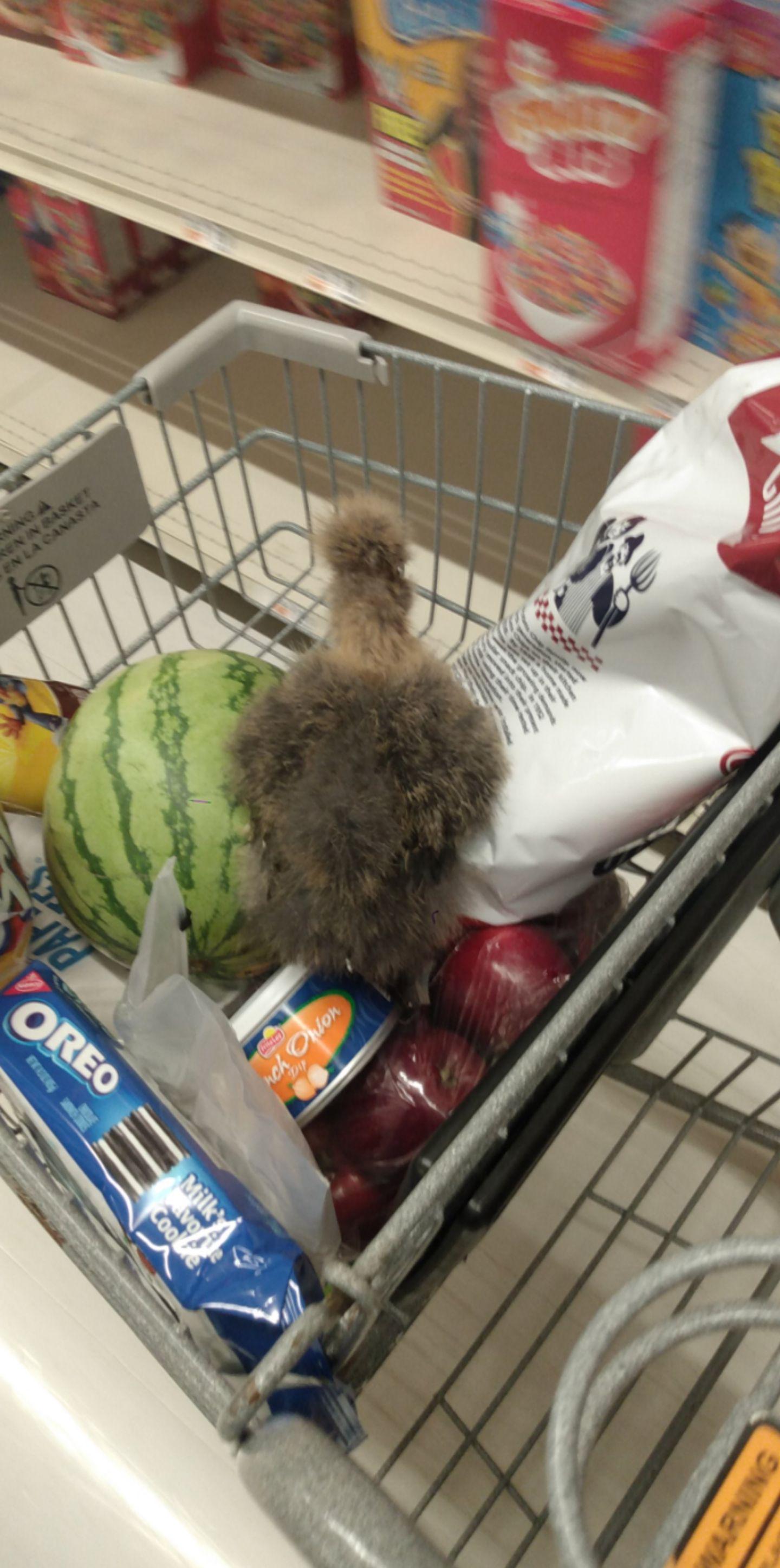 My chicken loves to help with grocery shopping