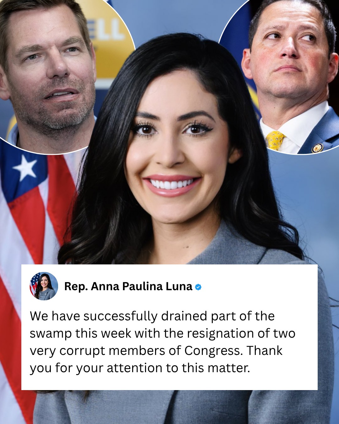 Following the resignation of Eric Swalwell and Tony Gonzales due to their misconduct, Rep. Anna Paulina Luna says the swamp that is Congress is succesfully being drained, and pushes for it to continue.