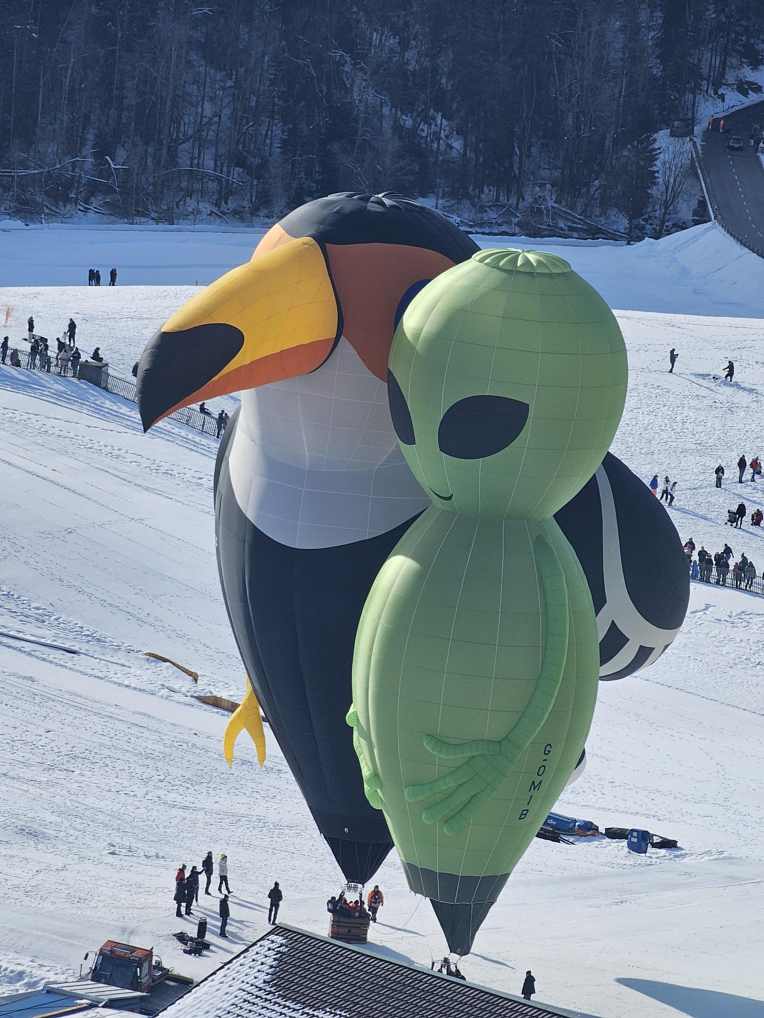 Two friends chilling at the international hot air balloon festival in Château D'Oex Switzerland