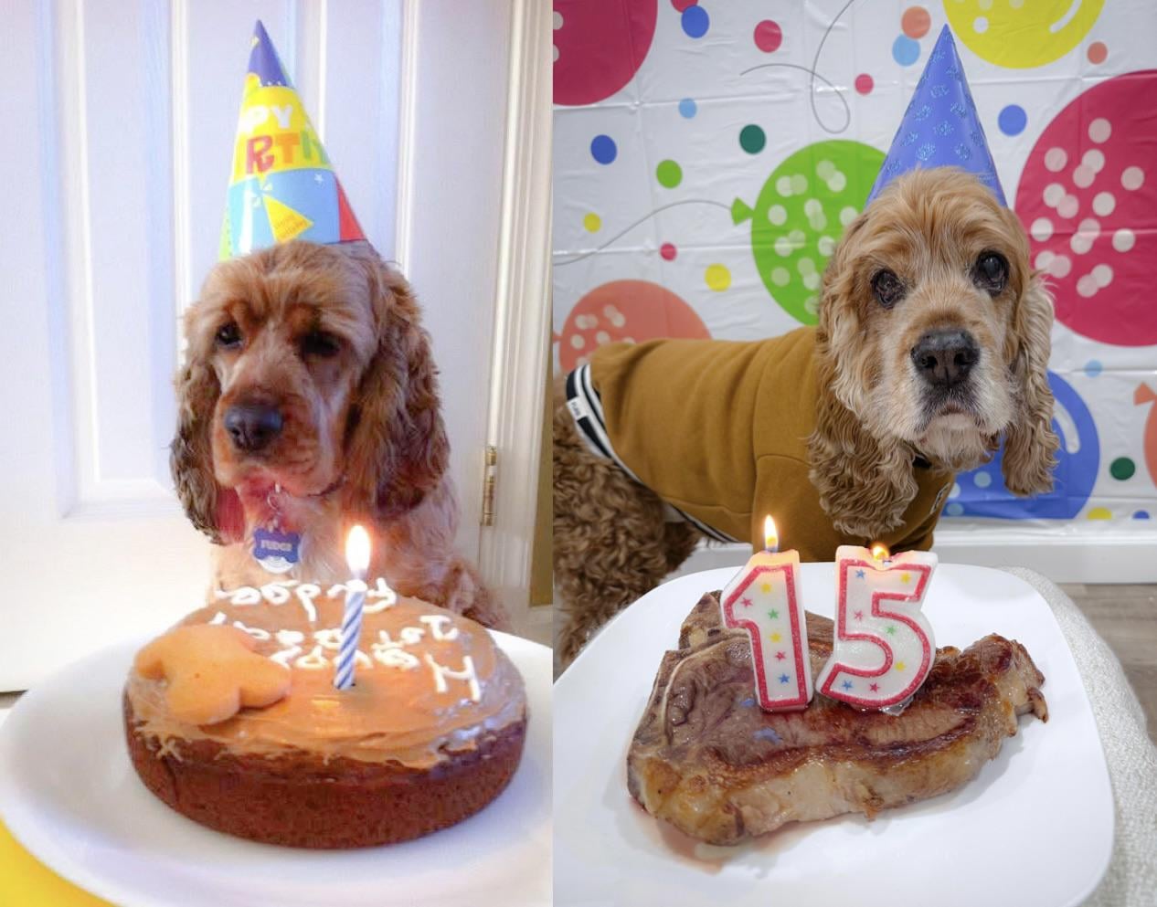 Fudge celebrated his quinceañero last weekend! 1st birthday vs 15th birthday 😭