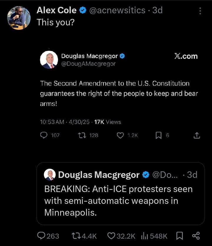 • Second Amendment good... until protesters bear arms