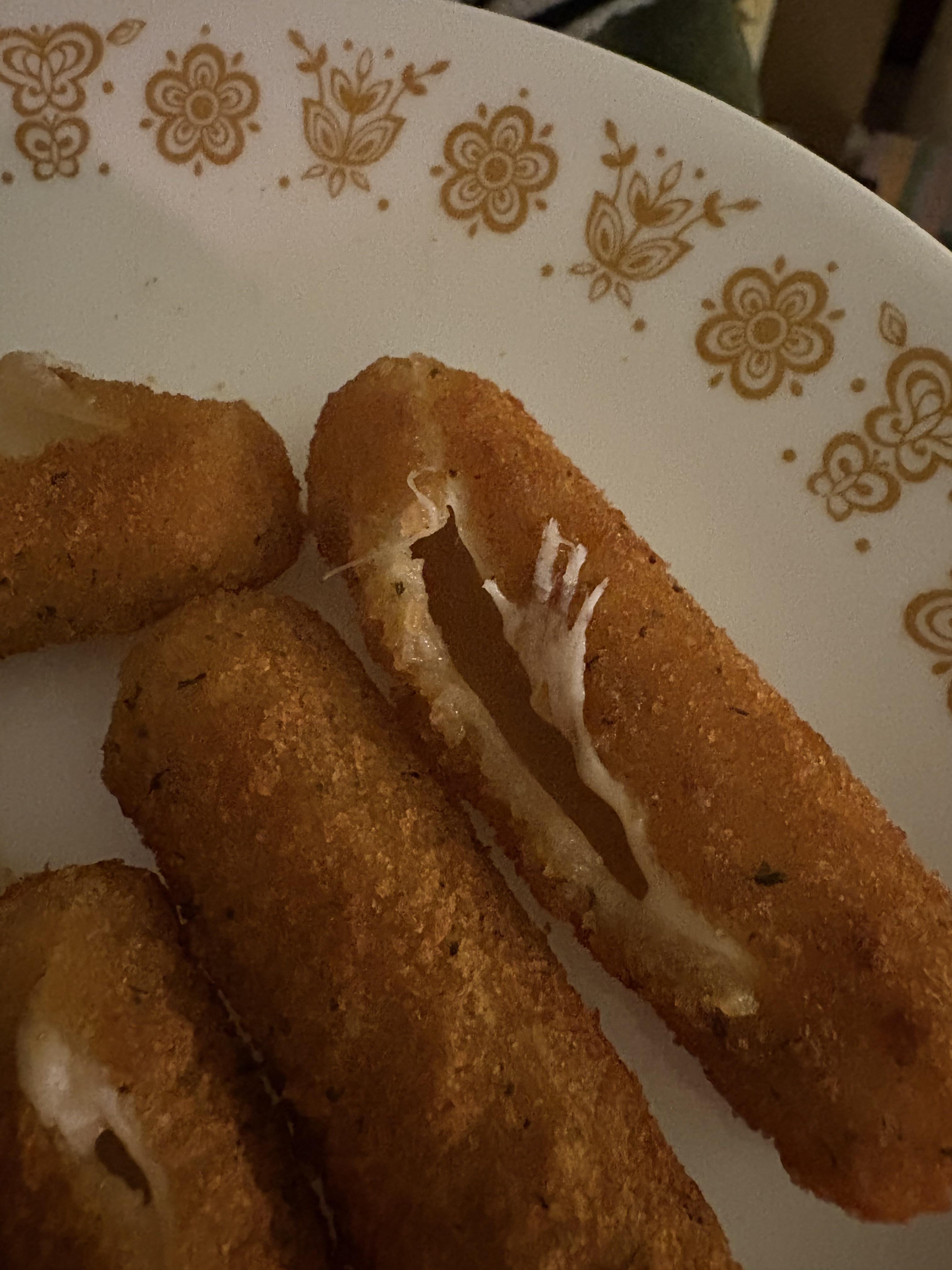 Overbaked my mozzarella sticks again. The first time was an accident :)