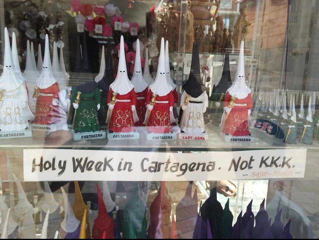 • A shop in Spain displaying traditional outfits worn by Nazarenos
