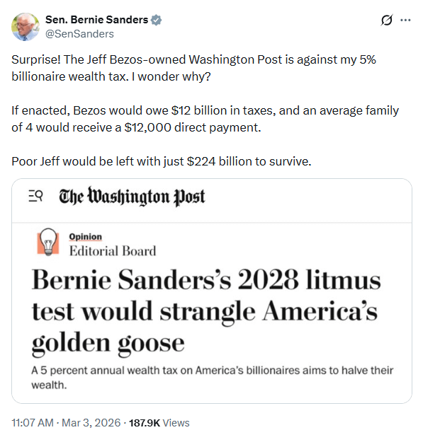 • News Flash! Billionaire owned newspaper comes out against taxing Billionaires.