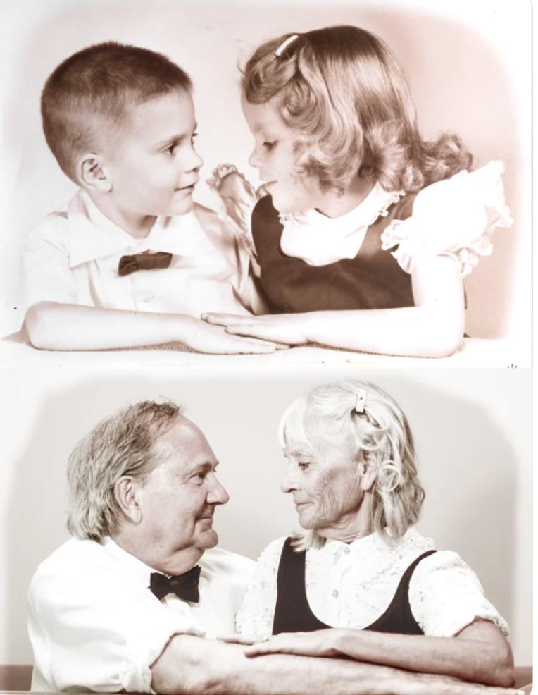 I helped my dad and his twin sister recreate this photo from 1954 for their 75th birthday
