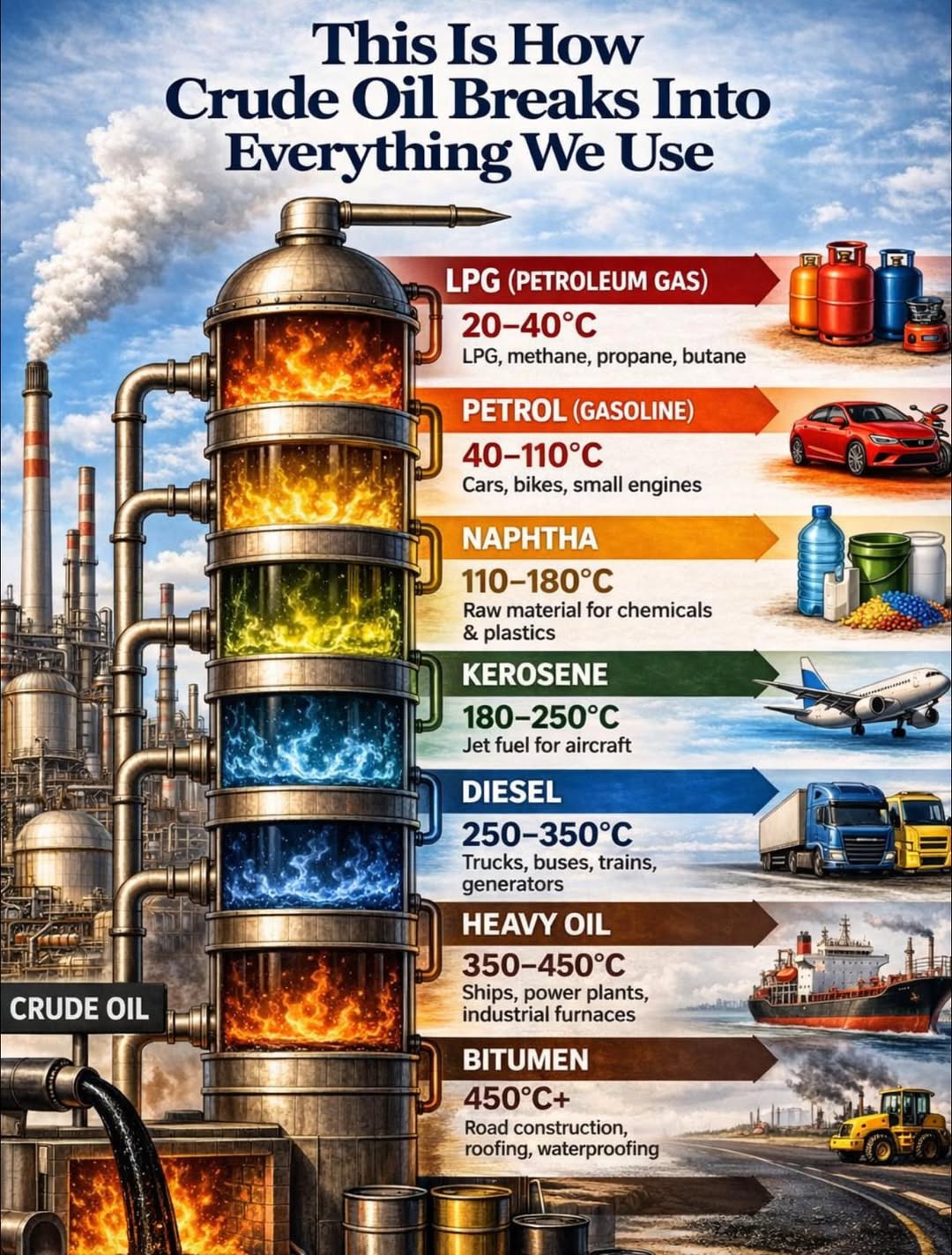 Inside a refinery, crude is split into petrol, diesel, LPG, jet fuel and more. So when supply is disrupted and prices rise…