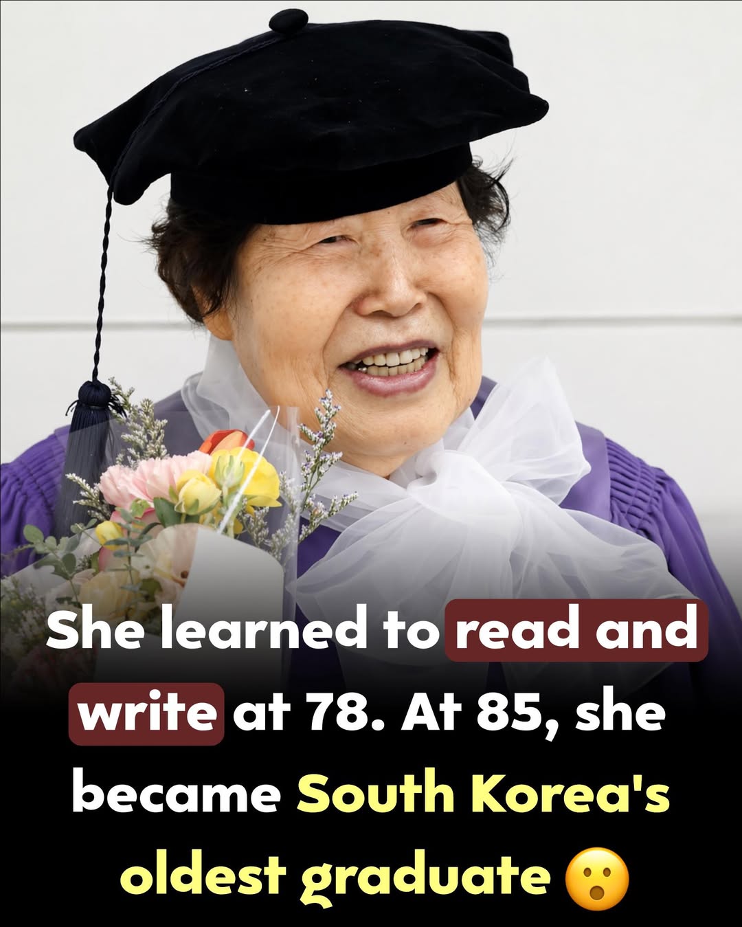 At 78, Kim Jeong-ja learned to read and write for the very first time . Growing up in South Korea, she never had access to education—something many women of her generation were denied. What started as a basic literacy program turned into an extraordinary journey. She learned Hangul step by step, then continued far beyond what most would expect—completing middle school, high school, and eventually enrolling at Sookmyung Women's University . In February 2026, at the age of 85, she walked across the stage to receive her associate degree in social welfare. It wasn’t just an academic achievement—it was reclaiming an opportunity she never had. While others built careers earlier in life, she built her foundation decades later, page by page. Her story isn’t just about “never too late”—it’s about persistence, dignity, and proving that determination can rewrite time .