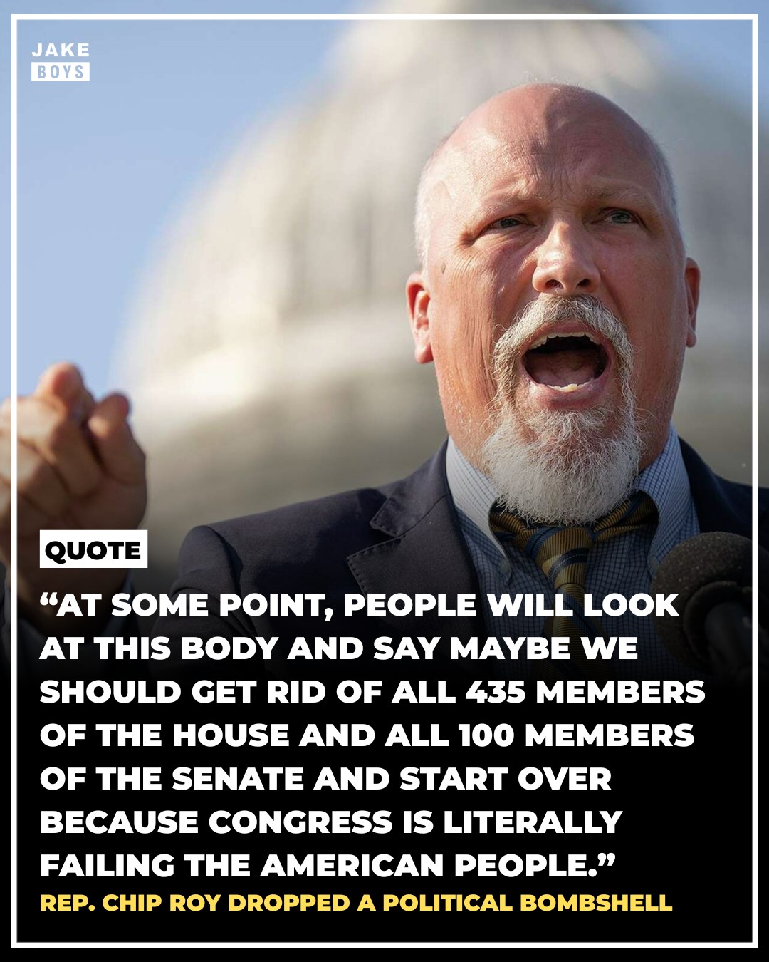 Representative Chip Roy has delivered an unprecedented attack on the entire structure of Congress itself, suggesting that the institution has become so fundamentally broken that complete replacement of all elected representatives may be necessary. His statement represents one of the most radical critiques of congressional dysfunction ever voiced by a sitting member, essentially arguing that the system has failed beyond repair. Roy's proposal to eliminate all 435 House members and 100 Senators amounts to calling for a complete governmental reset - a nuclear option that would effectively dissolve the legislative branch as it currently exists. This extraordinary suggestion goes far beyond typical partisan criticism or calls for reform, instead questioning whether the institution itself can fulfill its constitutional responsibilities to the American people. The Congressman's language frames this as an inevitable conclusion that the public will eventually reach, suggesting that congressional failures are so severe and systemic that citizens will demand total replacement rather than incremental change. His use of "literally failing" emphasizes what he sees as complete institutional breakdown rather than mere political disagreements or policy disputes. This represents a remarkable moment of self-criticism from within the system itself - a sitting member of Congress publicly entertaining the abolition of his own institution. Roy's statement reflects deep frustration with legislative gridlock, partisan dysfunction, and what he characterizes as Congress's inability to address fundamental challenges facing the country through normal democratic processes.