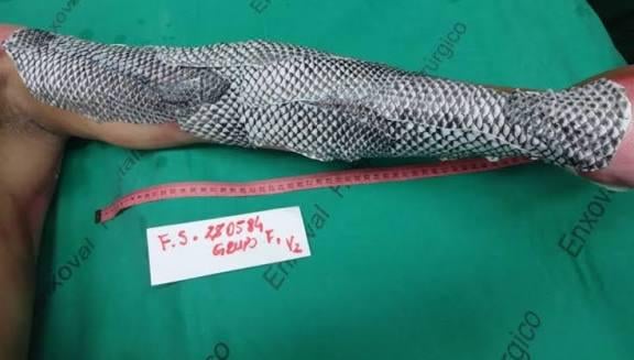 This is tilapia fish skin,used as a wound dressing for second and third degree burns for humans and animals.First tested on the burnt paw of a mountain lion, the dressing is now used widely in Brazil as a cost effective and more accessible dressing to treat human burn wounds.This is tilapia fish skin,used as a wound dressing for second and third degree burns for humans and animals.First tested on the burnt paw of a mountain lion, the dressing is now used widely in Brazil as a cost effective and more accessible dressing to treat human burn wounds.0 Yorumlar 0 hisse senetleri 110K Views 0 önizleme